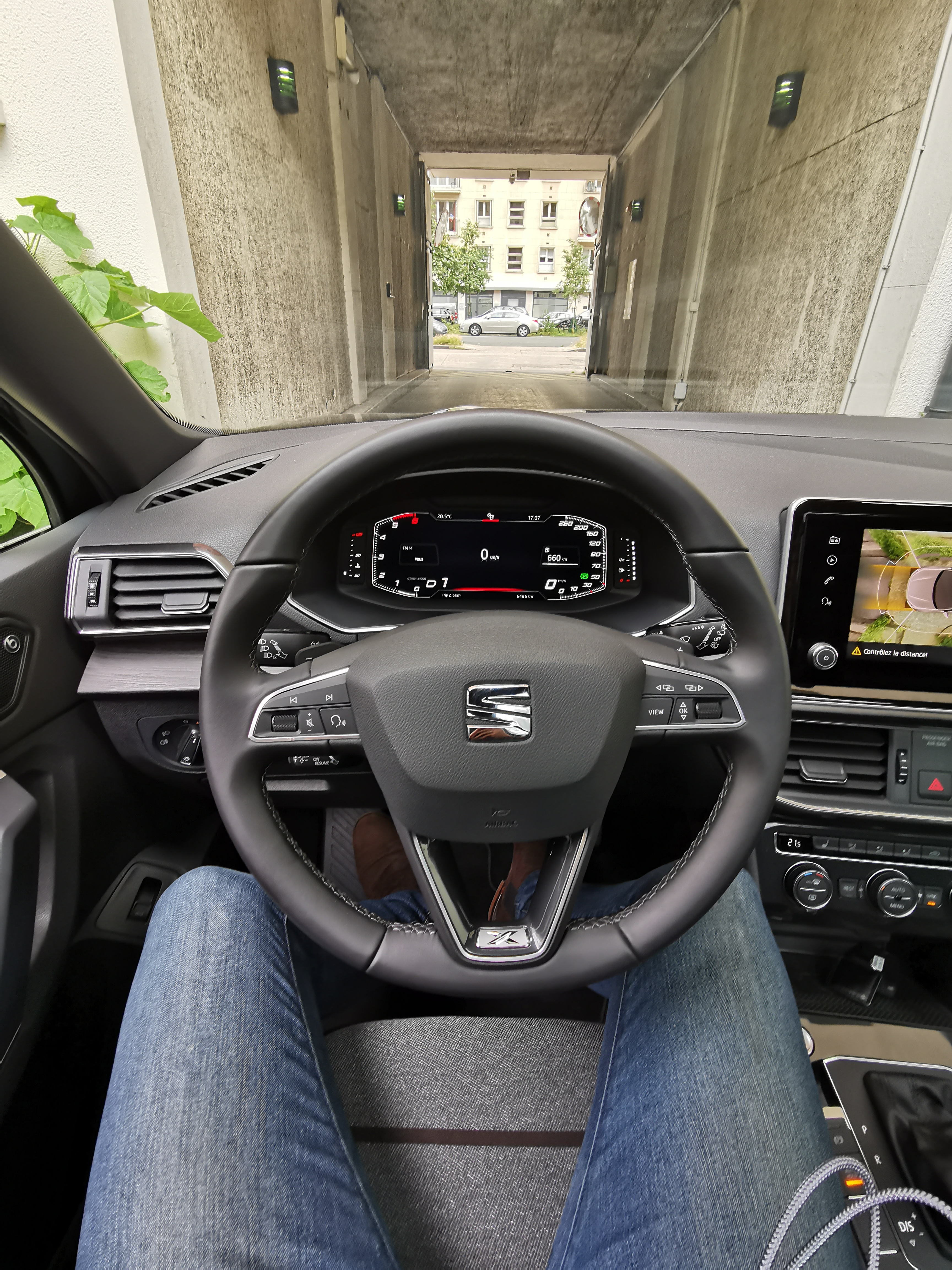 Floriane est passée au bureau. Julien était garé dans la rue avec le Seat Tarraco 7 places avec lequel il venait de passer une semaine Il devait rapporter la voiture. Avant qu'il ne parte, Floriane a voulu jeter un oeil pour se faire son avis. J'ai allumé la caméra....