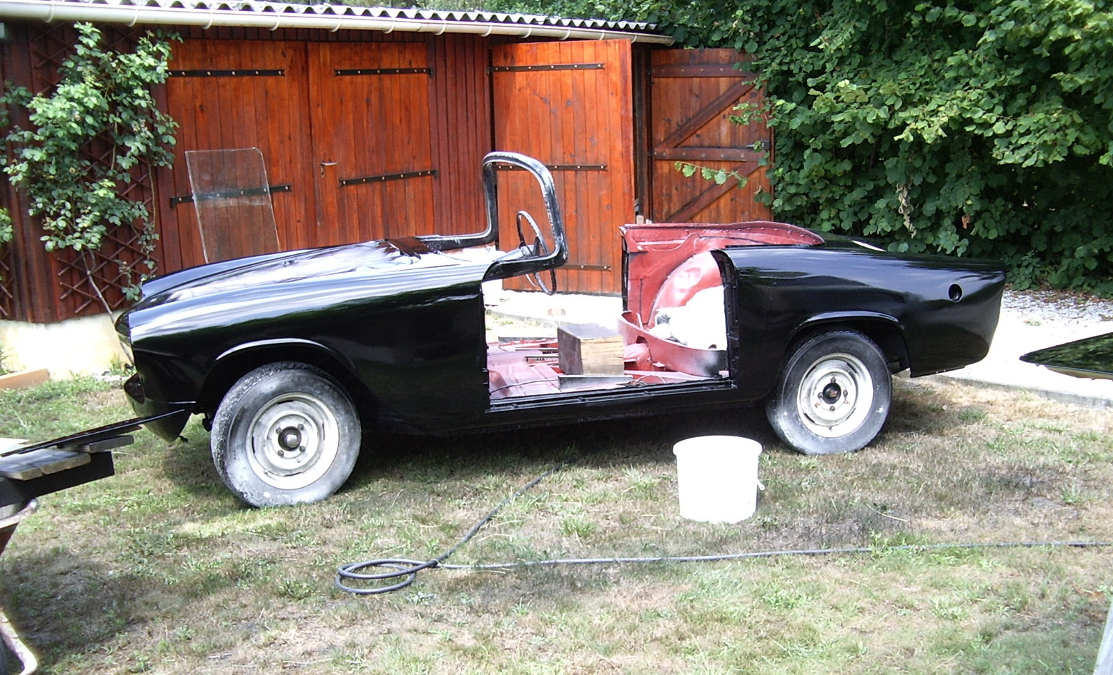 "A cause de leur capote mal conçue qui se coupait rapidement en se repliant et de deux trous d'évacuation d'eau qui se bouchaient, l'étanchéité de ce modèle n'étaient pas parfaite. La mienne acquise en 2005  avait son soubassement de Simca Aronde en bon état mais tout le reste était rouillée autant la carrosserie que les doublures internes dont j'ai du reformer de nombreuses tôles. On ne trouve plus les pièces de tôleries et de toute façon, comme cette voiture était pratiquement construite à la main, une tôlerie d'Océane ne s'adapte pas toujours sur une autre" explique Philippe qui me montre en photos toutes les étapes de restauration de sa voiture.