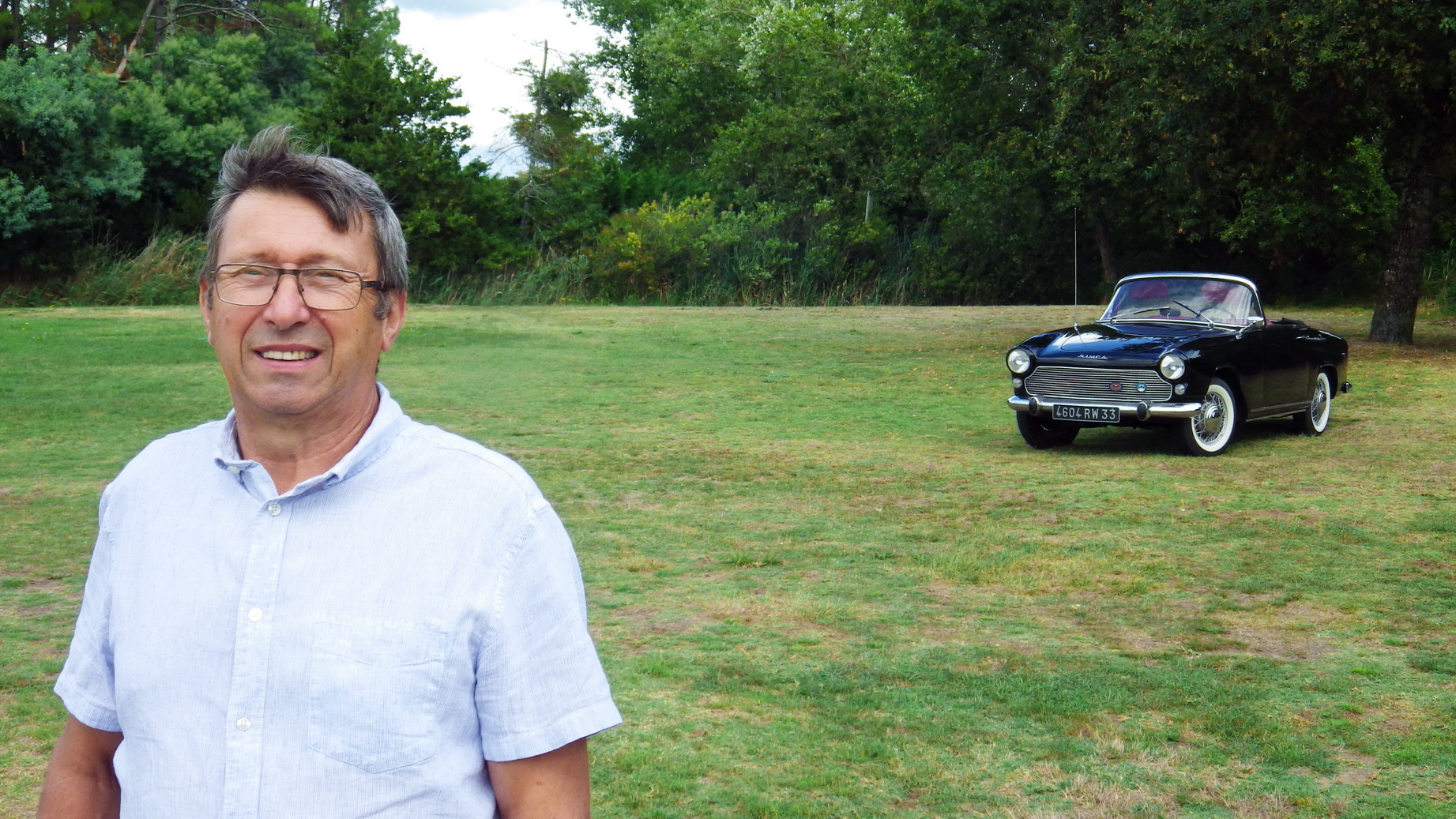 Pourquoi Philippe a choisi de cette voiture complexe à restaurer. " J'adore la marque Simca dont j'ai eu 8 modèles.  J'aimais l'esthétique des Plein Ciel et Océane mais comme je voulais un cabriolet, j'ai choisi cette dernière. Quand je l'ai achetée, elle était blanche et je l'ai repeinte en noir diamant qui lui donne plus d'élégance surtout avec les pneus à flancs blanc de série ces modèles. Je l'ai équipée de roues à rayons Robergel à la place des jantes d'origine et d'un volant à trois branches très recherché des modèles antérieurs à 1959. J'ai parcouru avec 30 000 km sans aucun problème lors de sorties d'anciennes et du club SFM (Simca Facel Metallon) qui regroupe tous les possesseurs de Simca construite chez Facel. Elle est très agréable à conduire. "