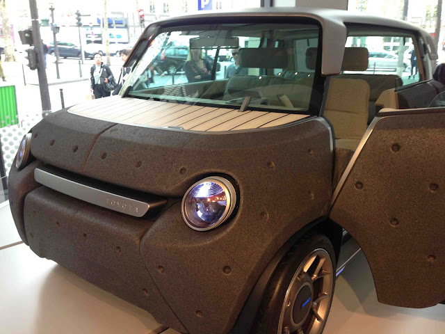 L’autre bonne idée vient du bambou qui recouvre le sol, comme un parquet, le tableau de bord, une partie du toit en verre et le capot. Le bambou est en excédent sur la planète, peu cher, facile à produire, il pousse en un rien de temps et il est ultra résistant. Ajoutez deux banquettes façon canapé qui donne l’impression de se retrouver dans une maison du bassin d’Arcachon, un pare-brise qui s’escamote pour rouler avec de l’air frais, un toit en verre, un poste de conduite simplifié avec un smart phone qui se connecte sur le tableau de bord, et ça fait la blague sérieusement.