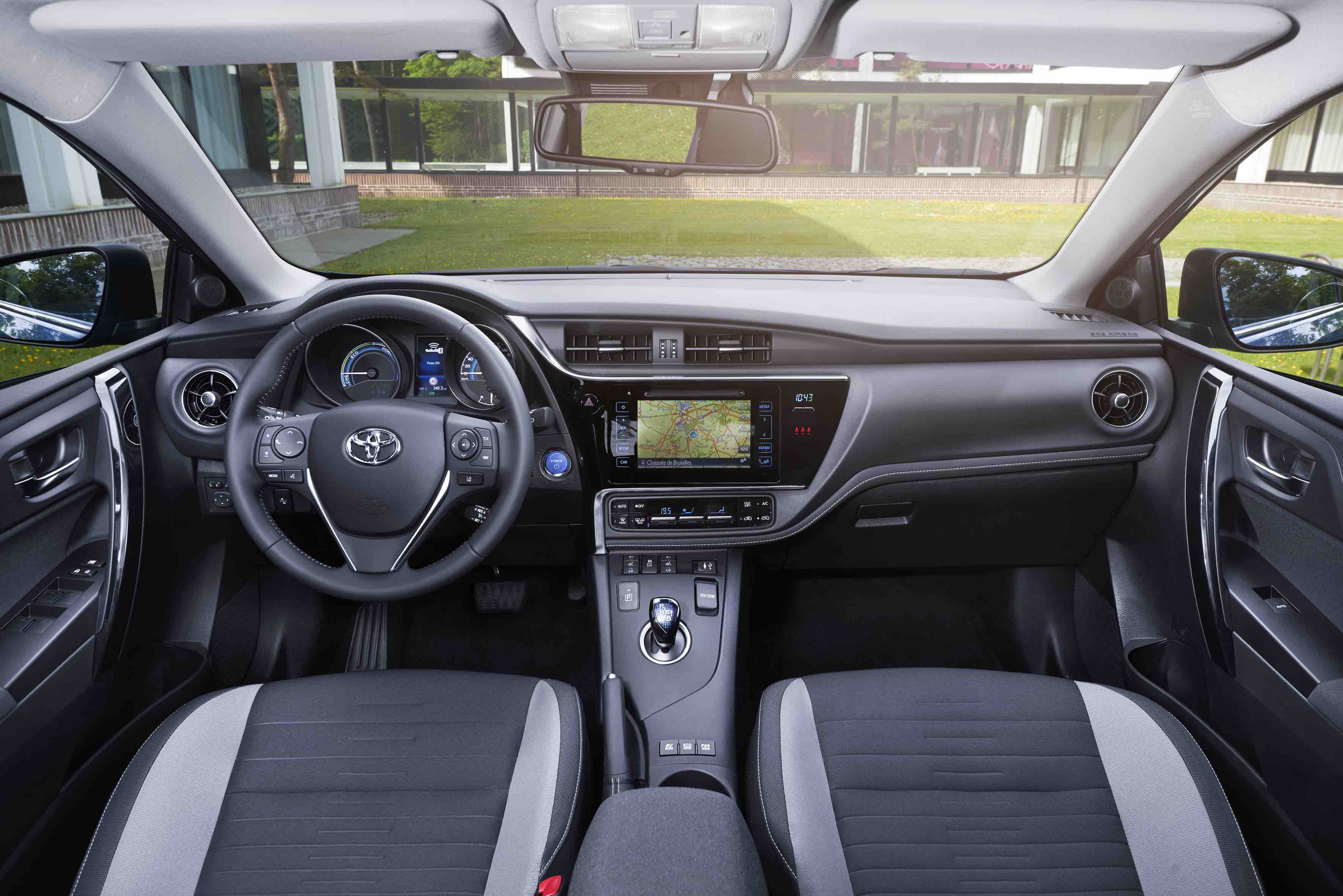 La planche de bord de la Toyota Auris Hybride a été égayée par quelques chromes et la qualité perçue des matériaux a été améliorée