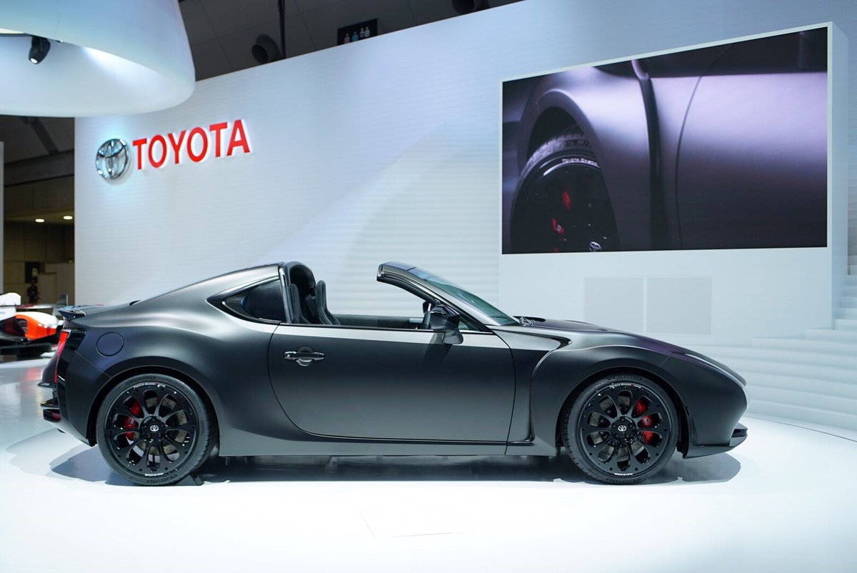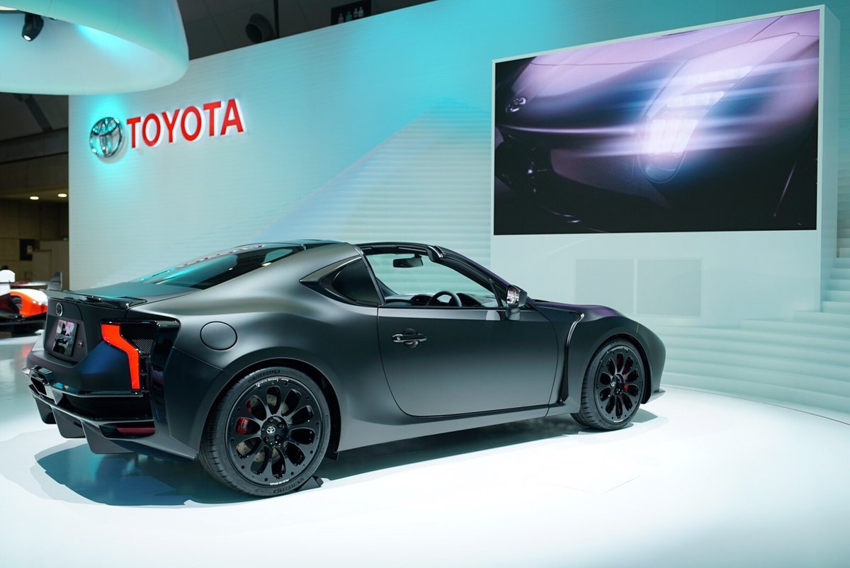 Concept de Targa à moteur hybride sur base de Toyota GT 86. Résultat saisissant avec des faux airs de K2000 ou de Mad Max car. Admirez le bouton de démarrage et la possibilité d'utiliser la boite automatique en mode manuelle (levier au plancher sans pédale d'embrayage). Génial.