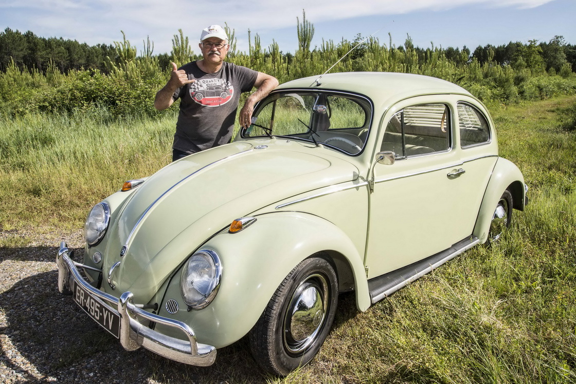 Tout a été revu pour que sa voiture âgée presque de 50 ans, vive encore au moins autant de temps.   Elle a été soigneusement repeinte avec une teinte d'origine vernie " vert Berryl" et toutes les pièces d'usure ont été changées ou refaites. Aujourd'hui, tout lui plait dans cette voiture, sa forme molle, son bruit de hanneton fatigué, la douceur de sa boîte. Et surtout les formidables moments de complicité qu'il a connus avec Mickaël lorsqu'ils restauraient tous les deux sa propre Cox. "Cette voiture marque des moments forts lorsque nous nous retrouvions tous les deux avec nos voitures respectives. Âgé de 35 ans aujourd'hui, il est toujours aussi passionné et bien plus que moi puisqu'il possède toujours la 69 qu'il a déjà restaurée, un coupé Karmann et un Combi TB2. Notre passion nous a poussé à créer un club de voitures anciennes ; Association Sanguinet Véhicules d'Antan".